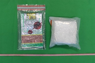 海關人員昨午在大埔進行反毒品行動,截查一名二十五歲男子時,在他攜帶的行李箱中發現該批懷疑冰毒收藏於茶葉包裝袋內,遂把他拘捕。