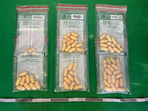 經檢查後,海關人員昨日確認該名男子體內藏有異物,隨即把他拘捕。截至今日(十月十一日)上午十時,被捕男子已從體內排出五十九粒共重約一點二公斤的懷疑可卡因。
