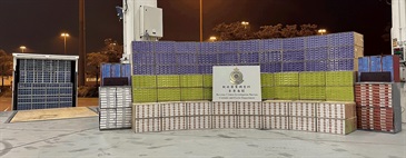 海關人員昨日下午在屯門、元朗和粉嶺一帶進行反私煙行動,深入調查一個活躍於新界西和新界北的私煙集團。調查期間,海關人員在屯門天后路一座工業大廈截查兩名正在卸貨的男子,並於一輛貨車內檢獲約一百八十萬支懷疑私煙,遂把該兩名分別二十歲和二十九歲的男子拘捕,並扣查懷疑涉案的貨車。
