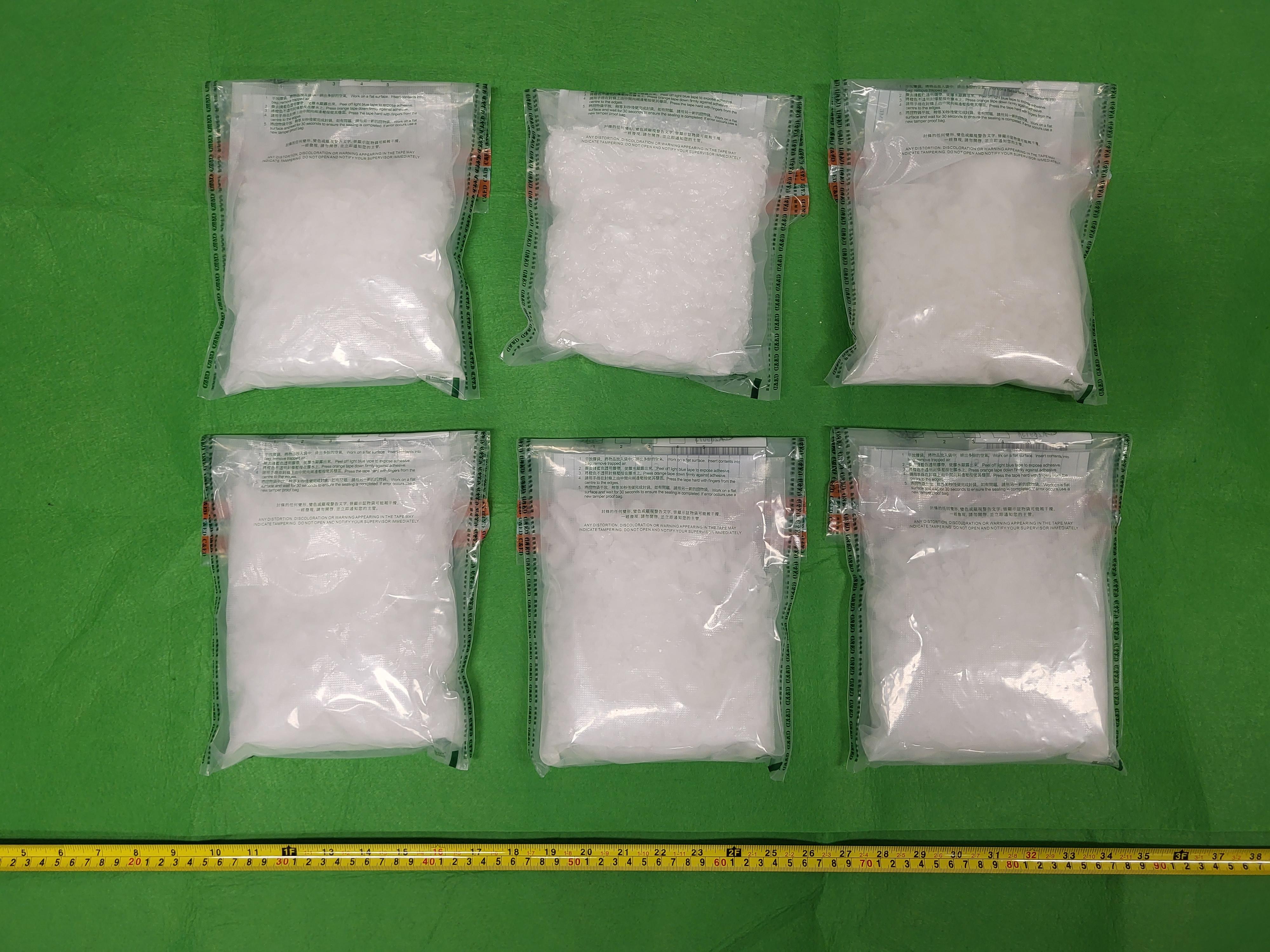海關人員當日透過風險評估,在機場查驗一件由泰國抵港的空運貨物,發現該批懷疑冰毒收藏於其中四個食品包裝內,包括兩個曲奇餅罐和兩個餅乾盒。