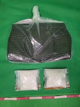 一名二十七歲女旅客昨日從馬達加斯加塔那那利佛,經埃塞俄比亞阿迪斯阿貝巴飛抵本港。海關人員替她進行清關時,在其皮手袋的暗格內發現該批懷疑冰毒,遂把她拘捕。