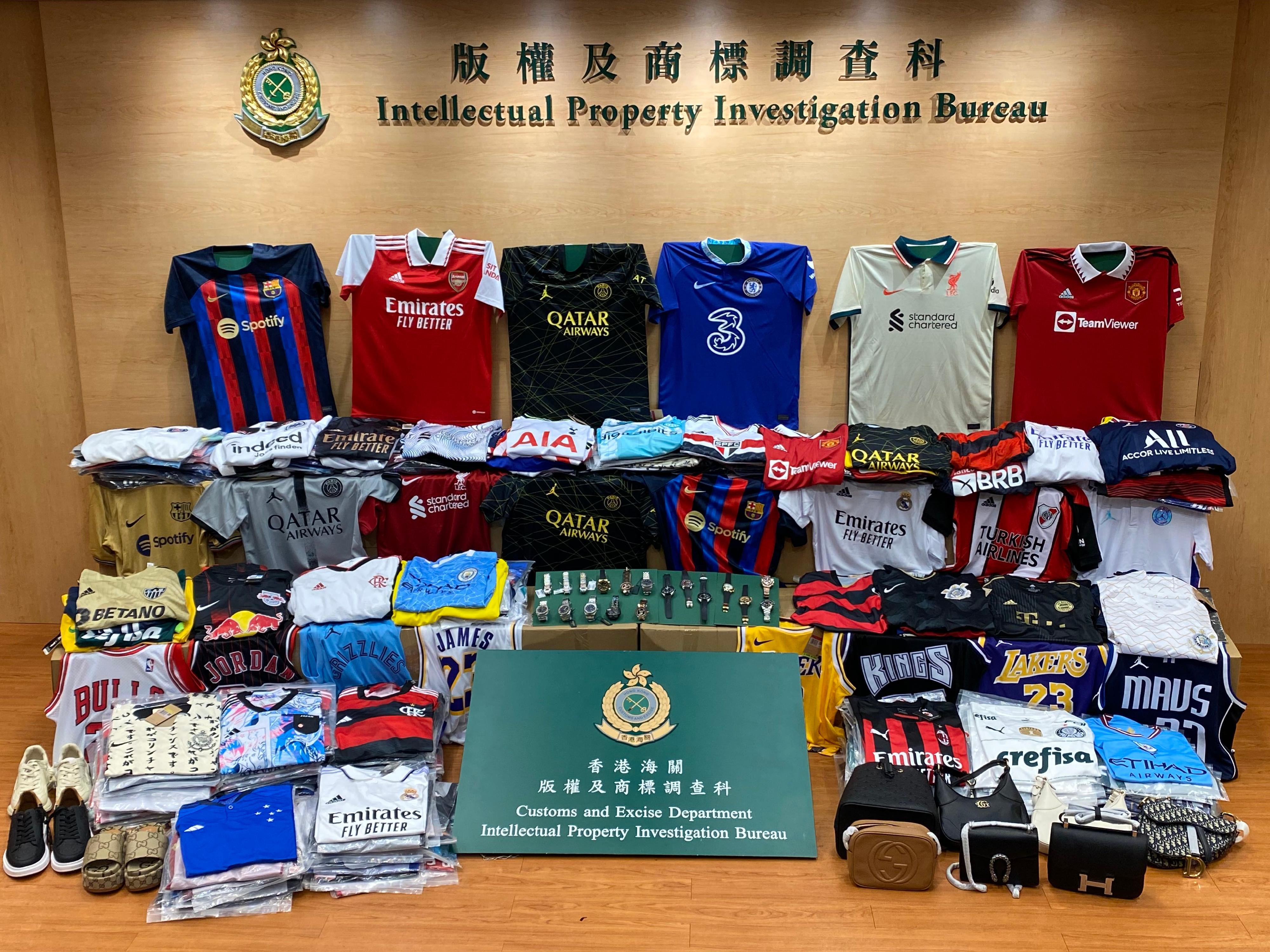 跟進調查後,海關人員鎖定元朗一間物流公司,並到該公司進行突擊搜查,再檢獲超過五千六百件懷疑冒牌貨物,包括足球球衣、手表和飾品。