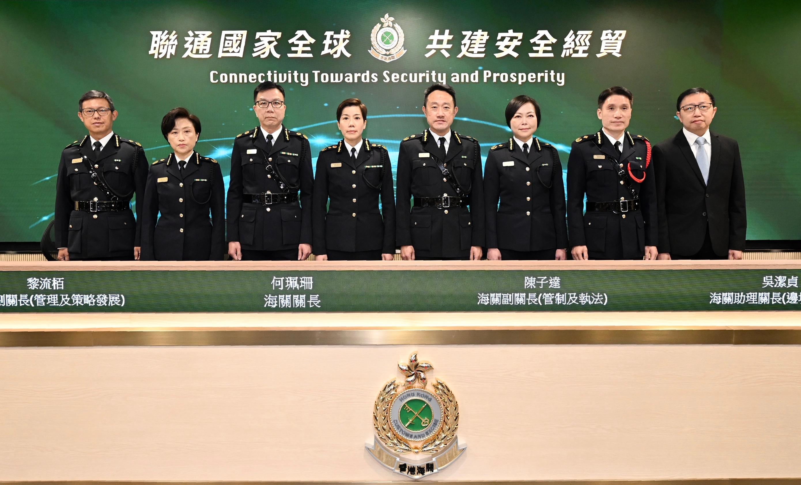 香港海關關長何珮珊今日(三月一日)於香港海關總部大樓主持部門二○二二年工作回顧記者會,總結過往一年香港海關的執法成效,以及於促進便商利貿方面的持續發展,並闡述部門銳意強化香港作為國家與世界其他地方的連接平台,發揮「背靠祖國、聯通世界」的獨特優勢,進一步融入國家發展大局,攜手共建安全高效的經貿環境的目標。