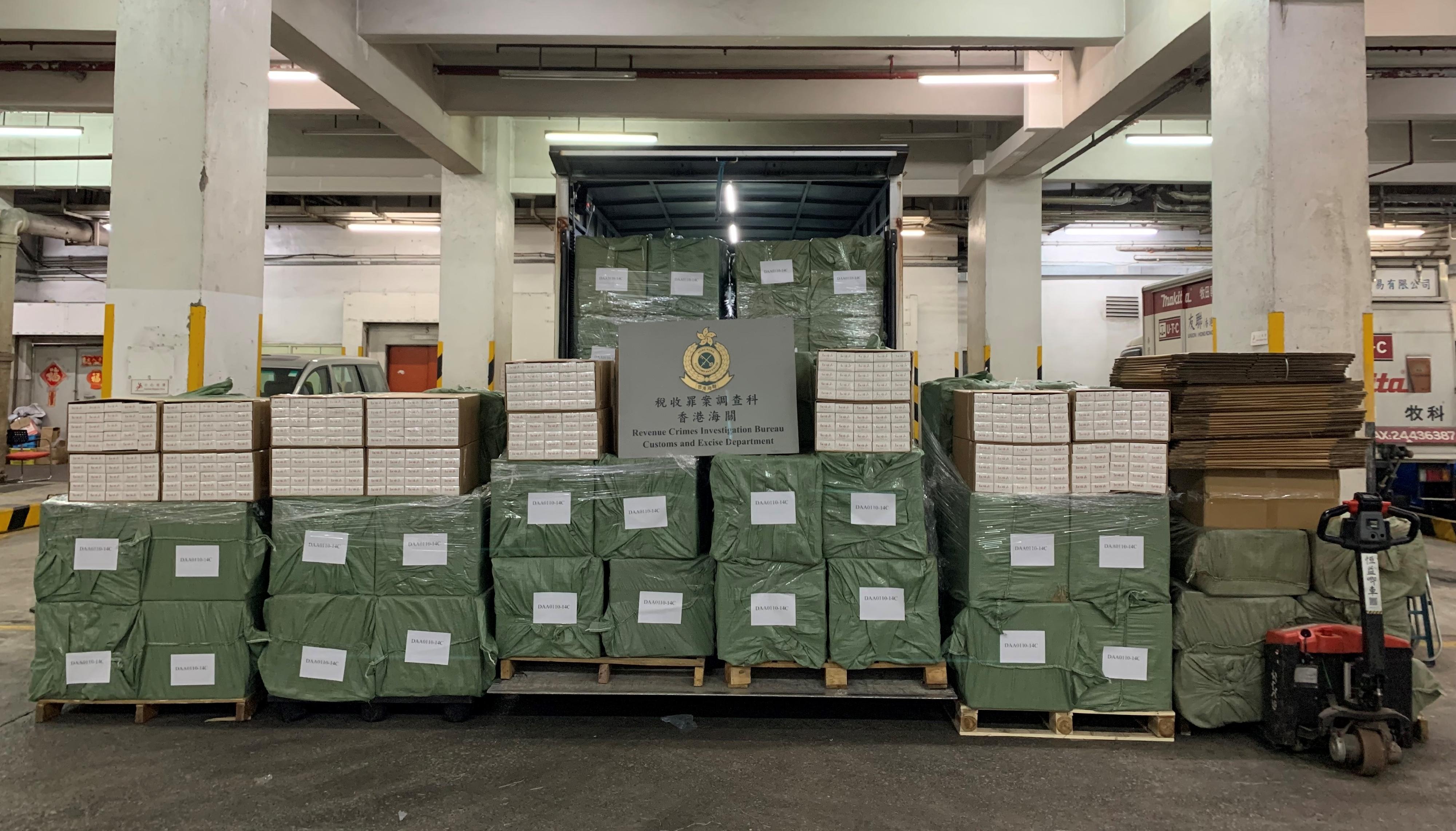 香港海關今日(三月三日)在元朗搗破一個懷疑私煙貯存倉庫,檢獲約二百八十萬支懷疑私煙,估計市值約一千零三十萬元,應課稅值約七百萬元。