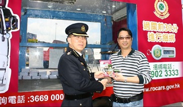 道路貨物資料系統將於今年十一月十七日全面實施,為協助跨境貨車司機盡早登記使用該系統,香港海關新設的一輛流動登記車今日(三月二十一日)正式投入服務。