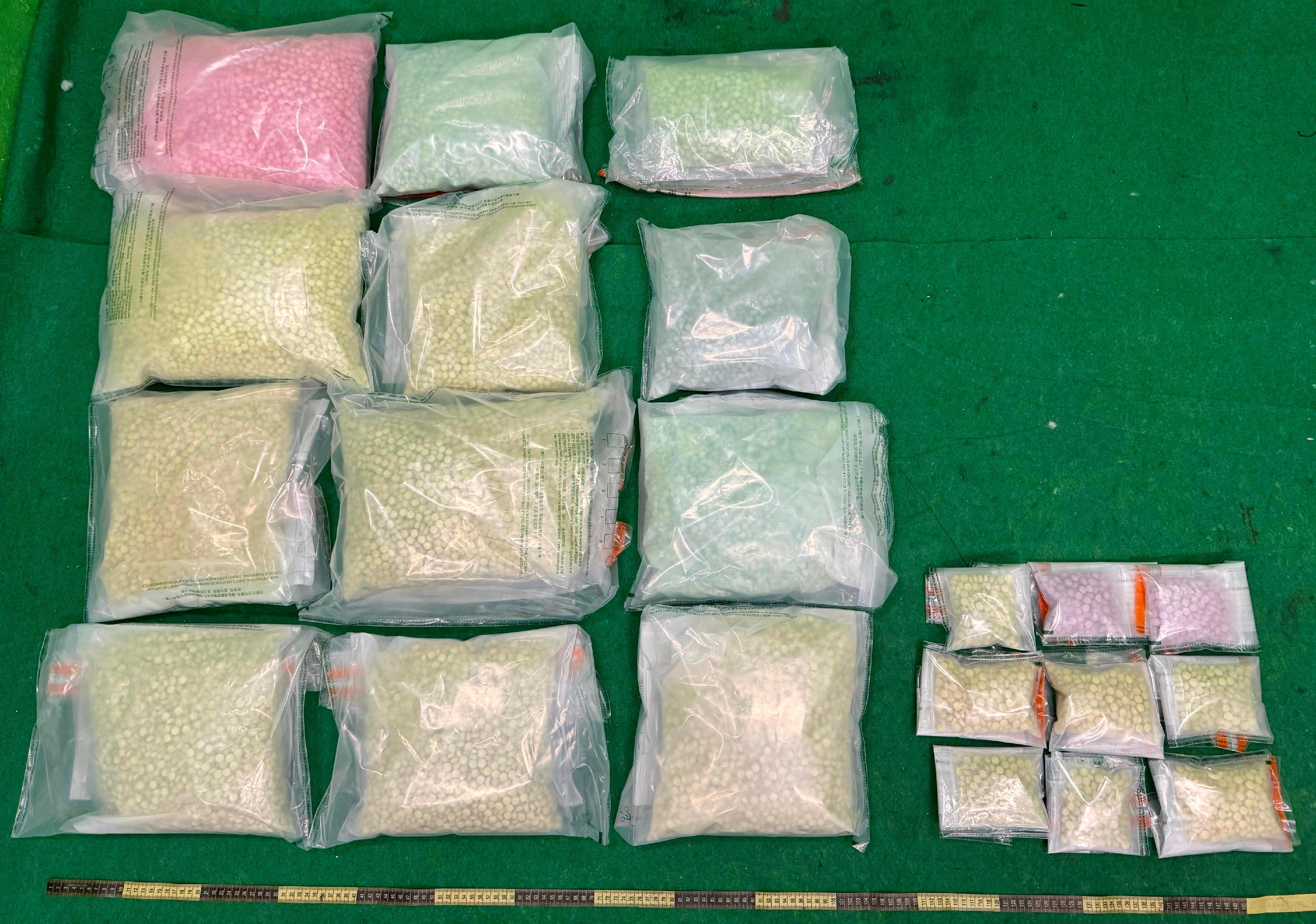一名四十九歲女旅客昨日從柬埔寨金邊飛抵本港。海關人員清關時,在其行李中發現約三十六點七公斤的懷疑搖頭丸,遂把她拘捕。