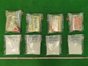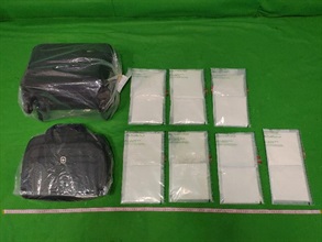 另外,兩名男旅客昨日分別先後由巴西經法國及由埃塞俄比亞飛抵本港。海關人員進行清關時,在第一名男旅客的手提行李箱和公事包的暗格內發現約四點四公斤懷疑可卡因,其後在第二名男旅客的寄艙行李箱中發現約一點二公斤懷疑可卡因被收藏在四樽個人衞生用品內。