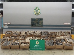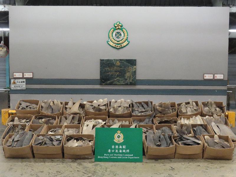 香港海關與漁農自然護理署昨日(一月十五日)進行聯合行動,在葵涌海關大樓驗貨場一個貨櫃內檢獲約五百零二公斤懷疑受管制屬瀕危物種的乾魚翅,估計市值約三十九萬元。