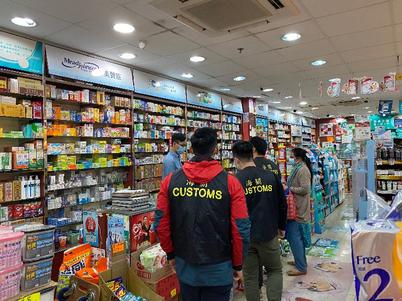 香港海關於一月二十七日展開代號「守護者」的全港性大規模特別行動,並出動近二百名海關人員,全面巡查全港各區及檢視市面上出售的外科口罩,確保市面出售的外科口罩產品符合《商品說明條例》及《消費品安全條例》的規定。截至今日(一月二十九日)為止,已經巡查超過一百八十個出售外科口罩的零售點,行動將會繼續。