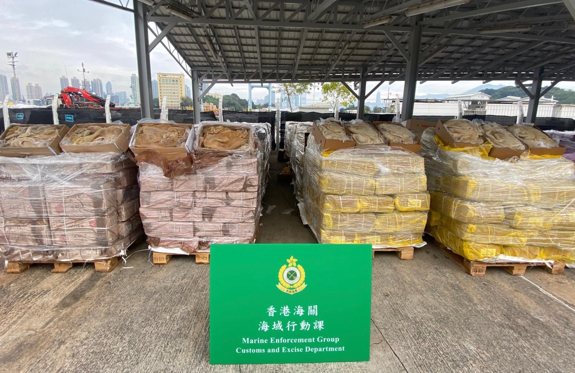 香港海關今日(一月二十一日)在香港西面水域進行反走私行動,偵破一宗涉嫌利用貨船走私的案件,檢獲約六十噸懷疑走私凍肉,估計市值約一千二百萬元。