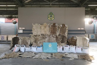 香港海關昨日(四月十五日)在葵涌海關大樓驗貨場一連破獲兩宗海路走私案件,共檢獲約十七噸懷疑走私驢皮、約五百二十公斤懷疑走私海參、約兩公斤懷疑走私花膠及約一噸懷疑受管制屬瀕危物種的乾魚翅,估計市值共約二百萬元。檢獲的驢皮數量為香港歷來最大宗。