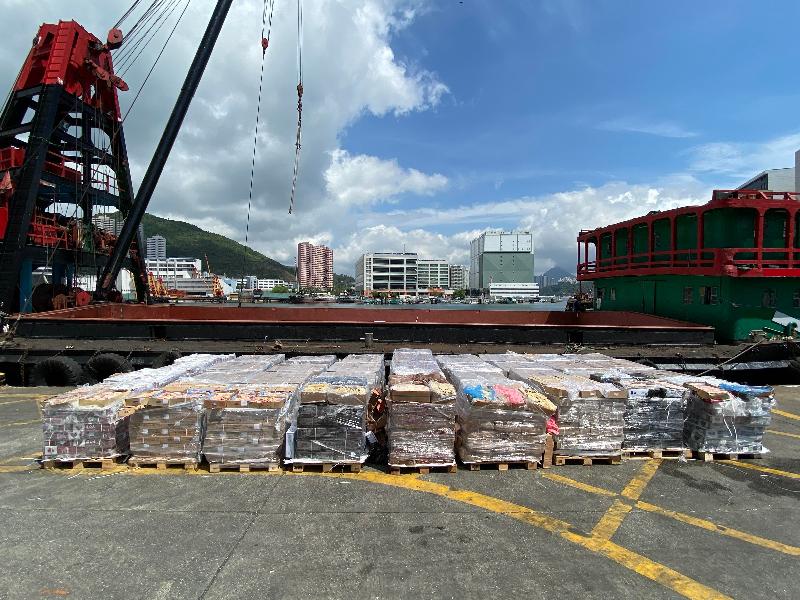 香港海關昨日(五月十五日)在香港國際機場對開海面偵破一宗涉嫌利用躉船走私的案件,檢獲約二百一十公噸懷疑走私凍肉,估計市值約七百三十萬元。