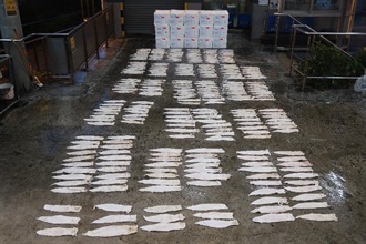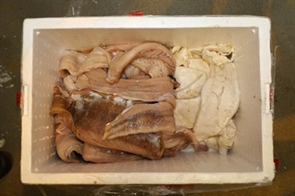 海關人員當日透過風險評估,檢查一批從美國抵港,報稱載有鮮魚的空運貨物。經檢查後,海關人員發現二十個發泡膠箱附有來源地為墨西哥的標示,並在其中十五個發泡膠箱內發現該批懷疑受管制加利福尼亞灣鮮石首魚魚肚,與冰鮮魚柳混雜一起。