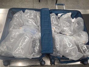 海關人員稍後從一件無人認領的行李內發現約四十六公斤懷疑錘頭雙髻鯊乾魚翅。