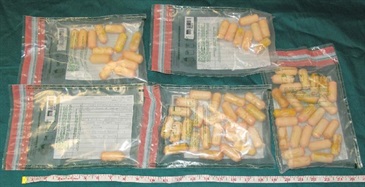 香港海關於五月五日在香港國際機場破獲一宗以體內藏毒方式販運危險藥物的案件,檢獲共重923克的可卡因,市值約一百萬港元。行動中,一名三十八歲的外籍男子被捕。